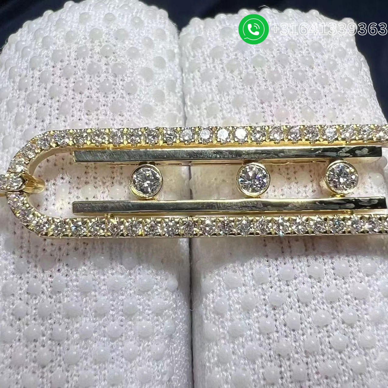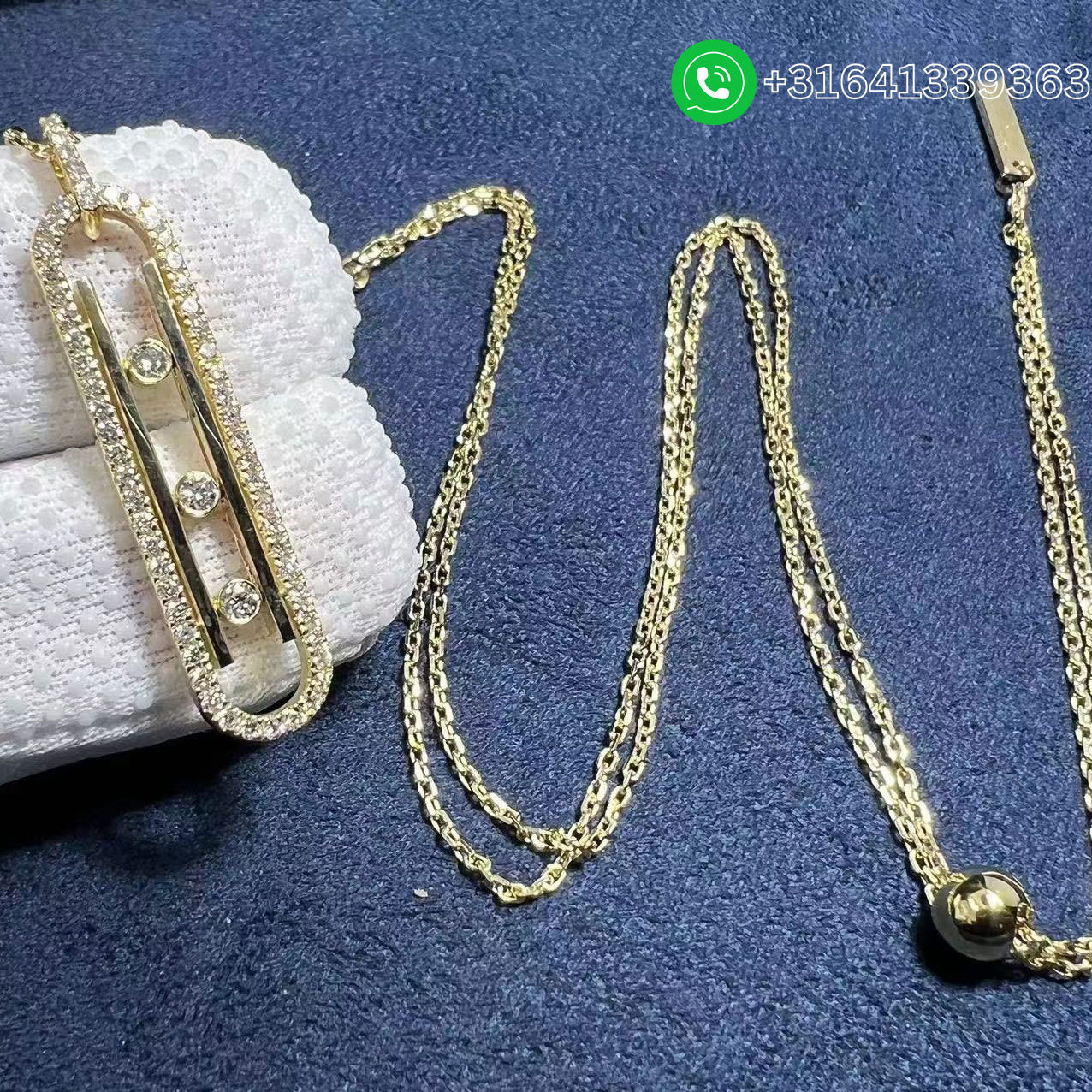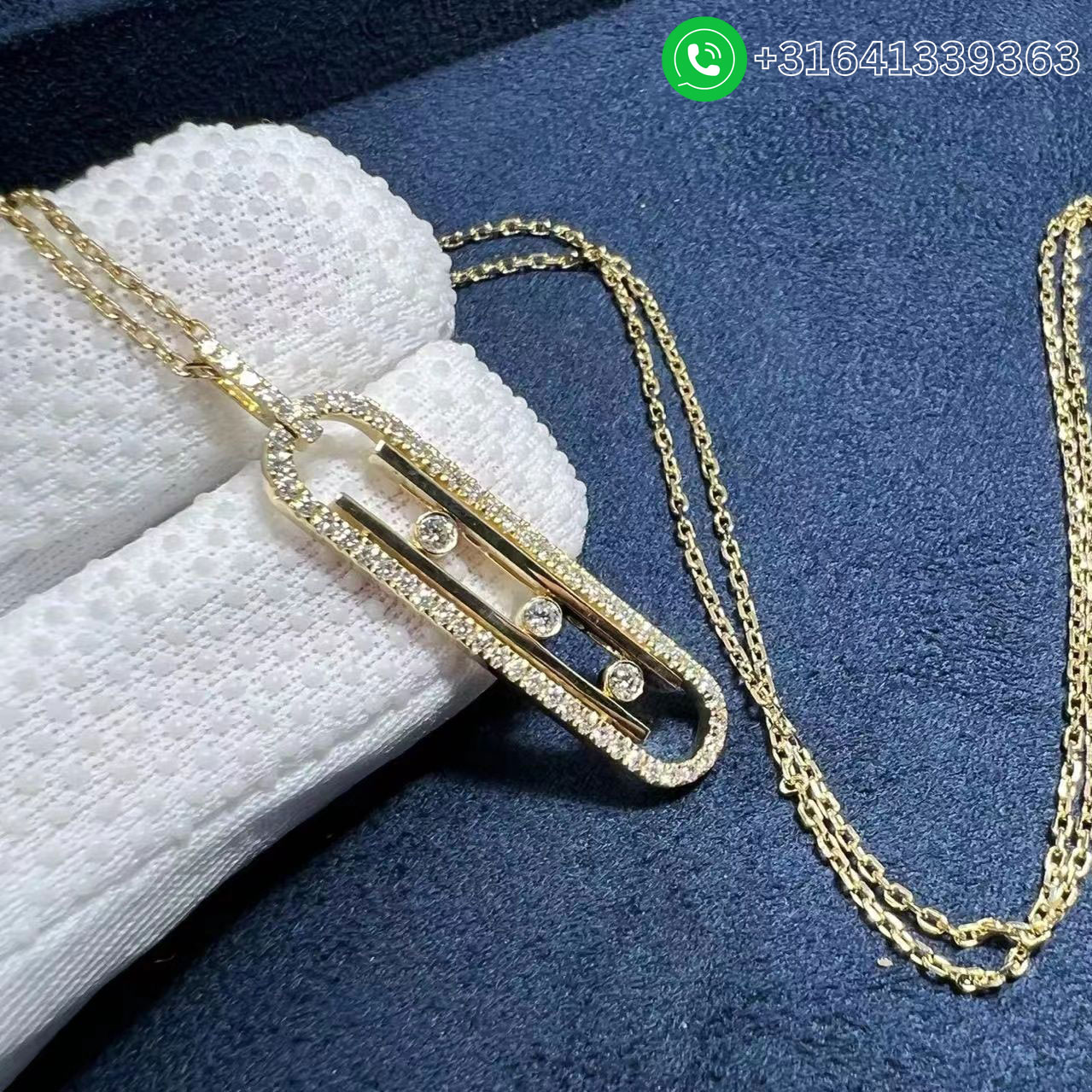 Let be seduced by the yellow gold diamond necklace Move 10th. A unique, bold piece of diamond jewelry, the Move 10th yellow gold diamond necklace will not fail to move you. Celebrating the lines from the Maison’s signature design, the sparkling Move moving diamonds are offset by two lines in radiant 18 carat yellow gold. Our style advice: wear this yellow diamond necklace for women, a real good-luck piece, alone or layered with other models from the collection to embrace the stacking trend. You’ll be sure to love its sliding chain system, which makes it possible to adjust the length from day to day to suit any neckline. Metal: 18k yellow gold Diamonds: 0.74ct Length of chain: 80cm (adjustable sliding chain) Length of the pendant: 40 mm Width of the pendant: 9 mm Thickness: 4mm (at the moving diamonds) Reference: Move 10th diamond necklace for women 10032-YG Wholesale Price: Whatsapp for price Whatsapp: +31641339363 We offer 1:1 highest quality Messika jewelry customized,and factory direct selling,only cost 30%~60% of the original cost of these popular brands. We have more than 15 years experience focus on luxury jewelry making,and all items are made in real 18K yellow gold,white gold,pink gold,platinum,gemstones and genuine diamond with GIA certificate. What’s more,all items are come with top workmanship,good service,factory price,original packages and free shipping. It is easy for you to customize your own luxury jewelry with us: Send us the styles or products links you like, no matter whether it is a Cartier LOVE bracelet, a Bvlgari Serpenti Ring, Van Cleef & Arpels Magic Alhambra necklace, or Graff Bracelet, even your own design. And let us know your desired sizes. Pay 50% as deposit, or full payment. The balance needs to be cleared before shipping. Wait about 7 days for the production. For some complicated styles, it takes longer time. We take pictures of the finished jewelry for your confirmation, and get the balance payment. Jewelry ship to you. A tracking number will be provided. It takes about 3 to 5 days for you to get the jewelry.