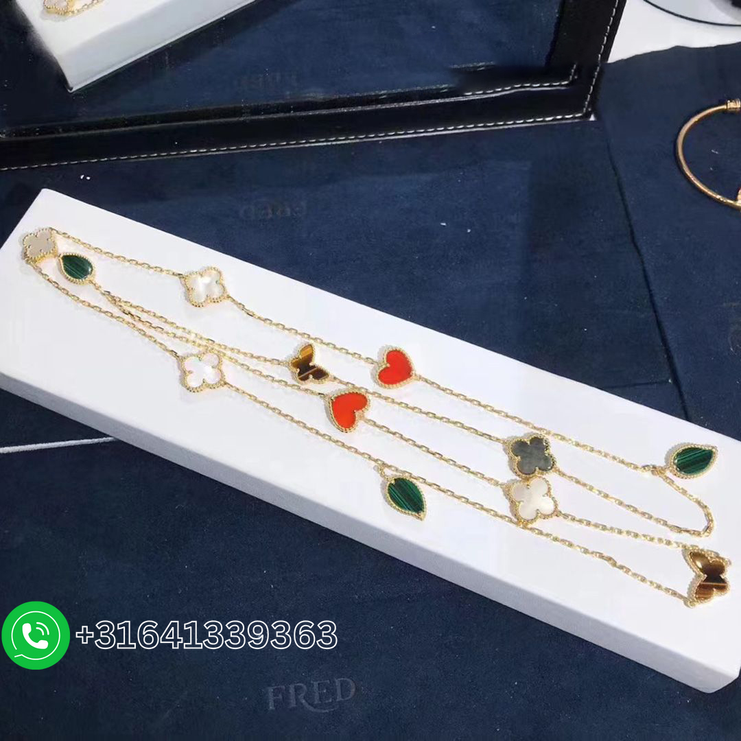 Van Cleef & Arpels 18k Yellow Gold Gems 12 Motifs Lucky Alhambra Long Necklace VCARD80100