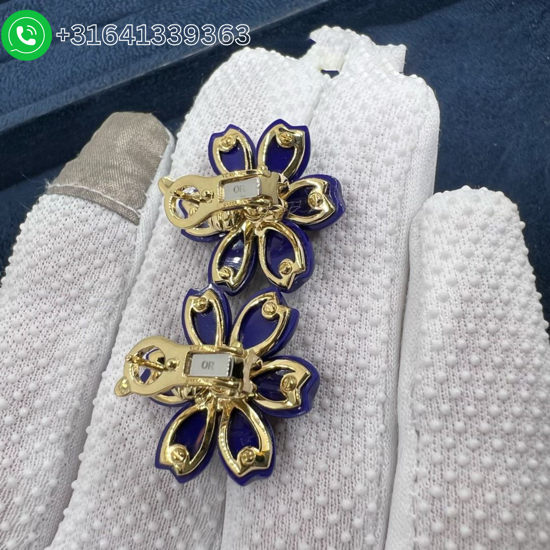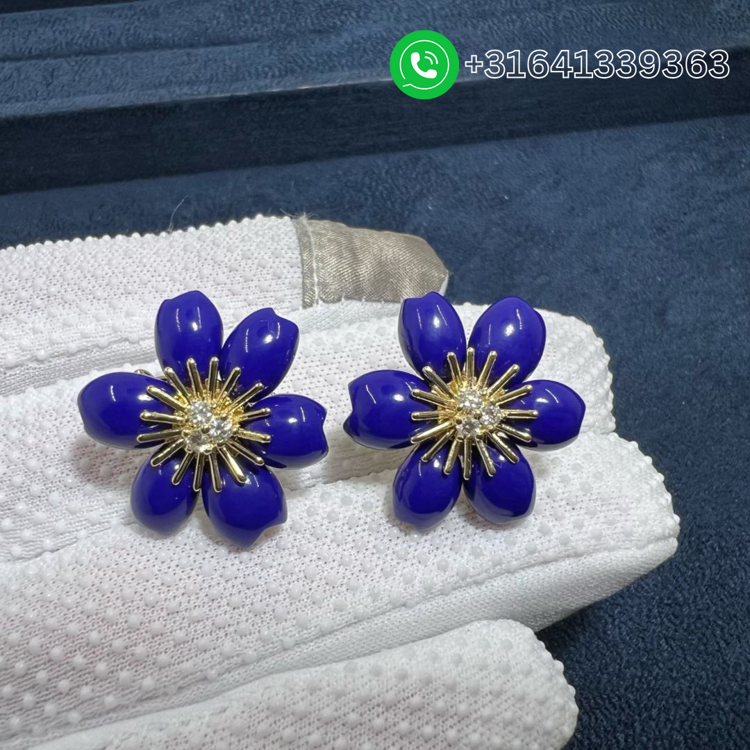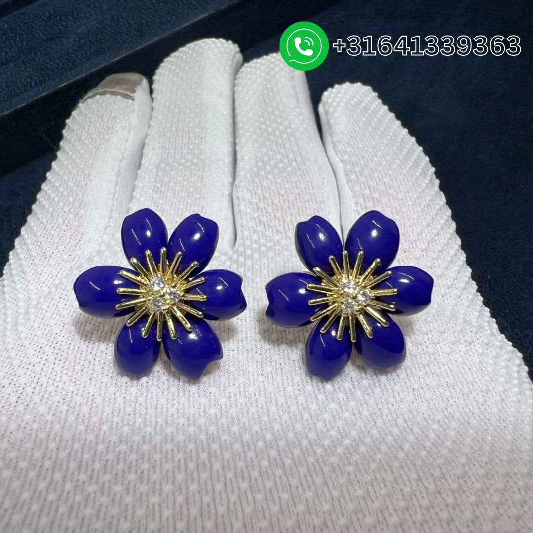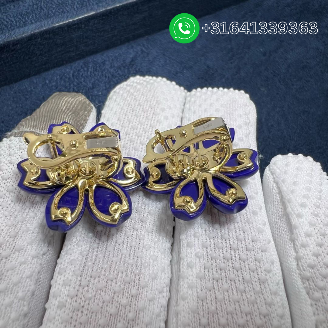 Van Cleef & Arpels 18k Yellow Gold MiNi Model Lapis Lazuli Flower Rose de Noel Diamond Earrings VCARP7RW00