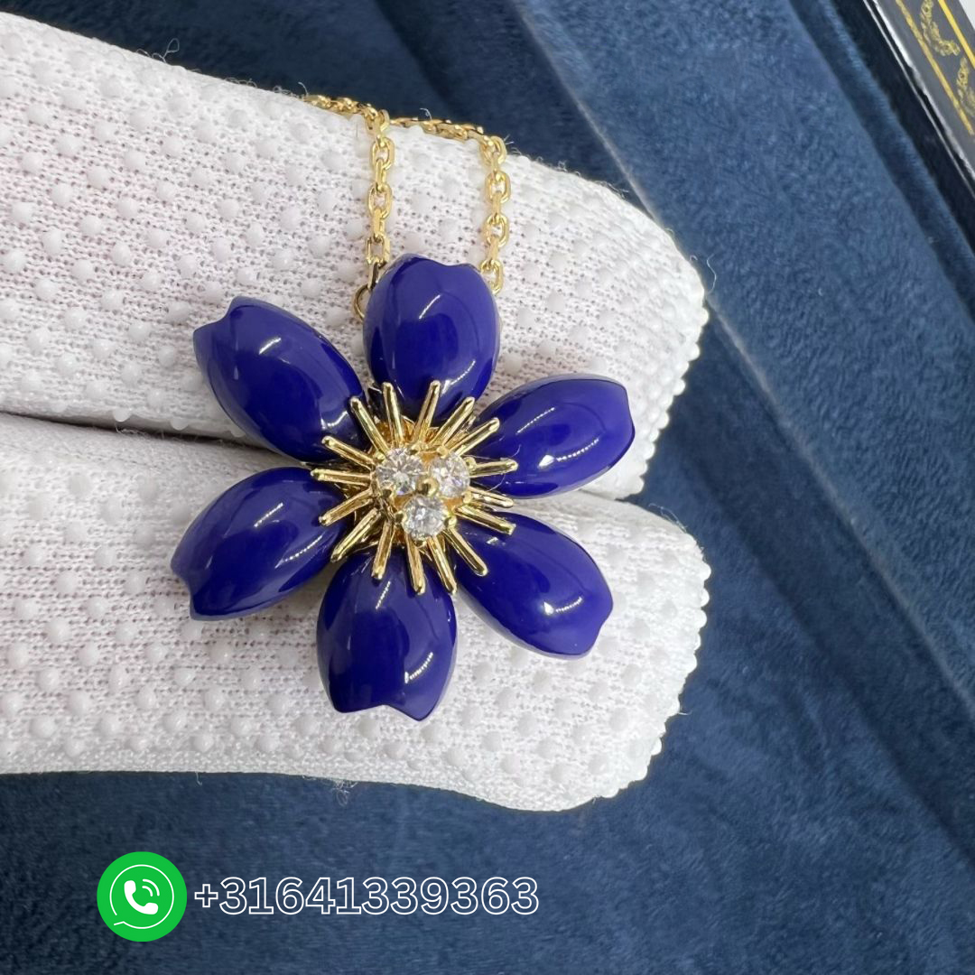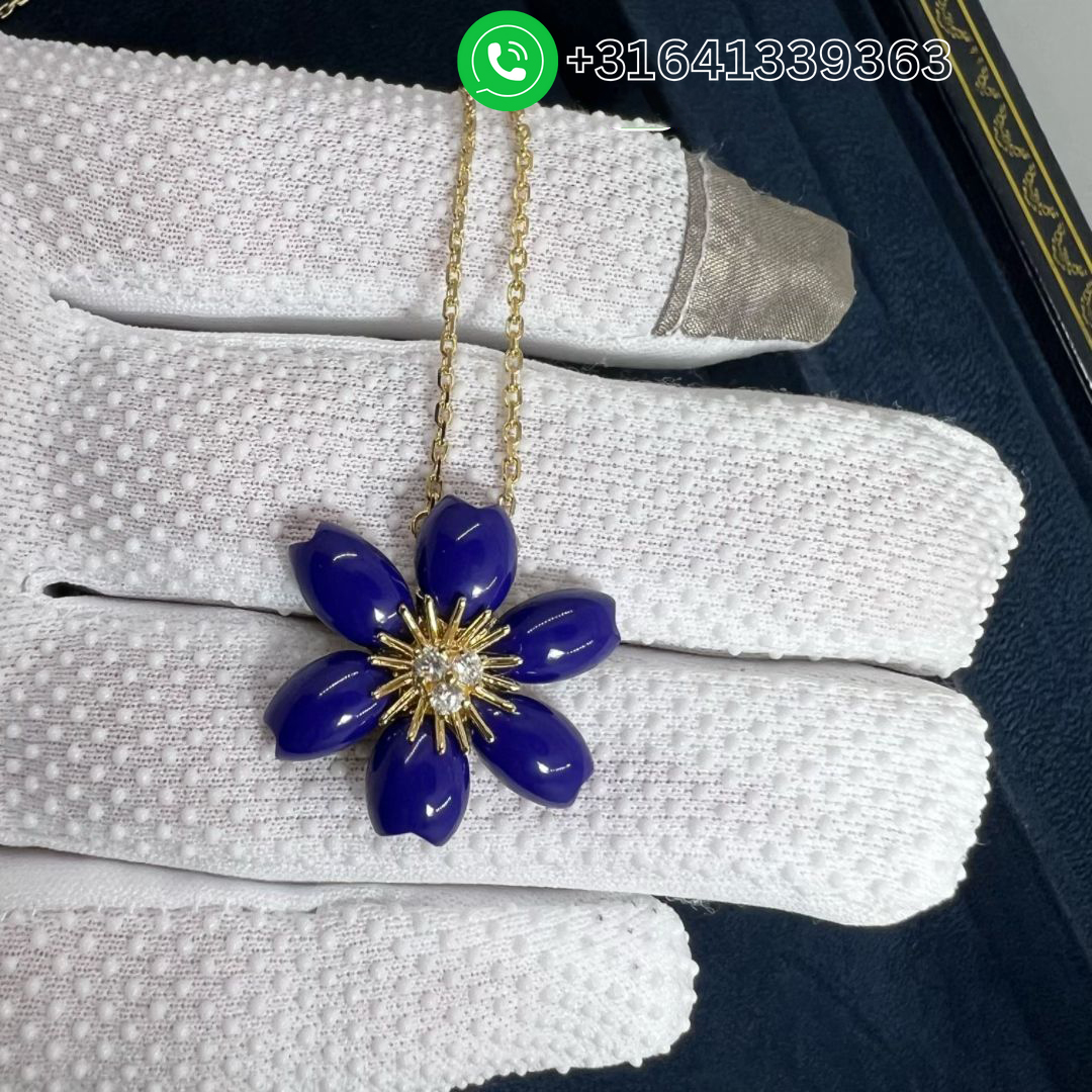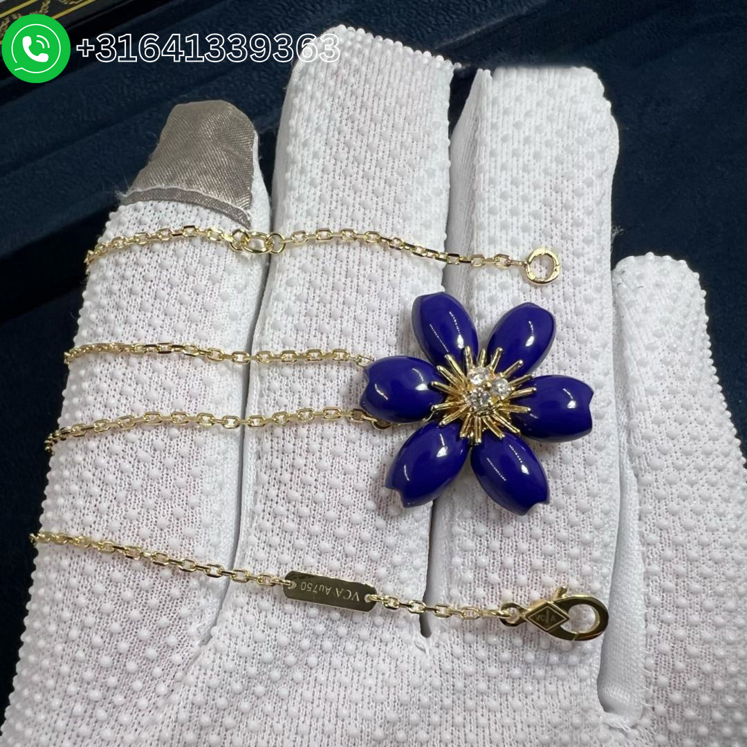 Van Cleef & Arpels 18k Yellow Gold MiNi Model Lapis Lazuli Flower Rose de Noel Pendant Necklace VCARP7T200