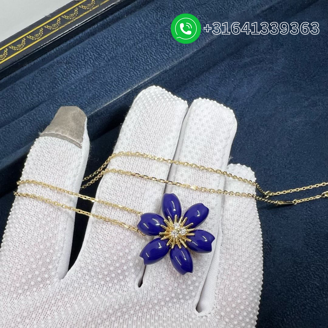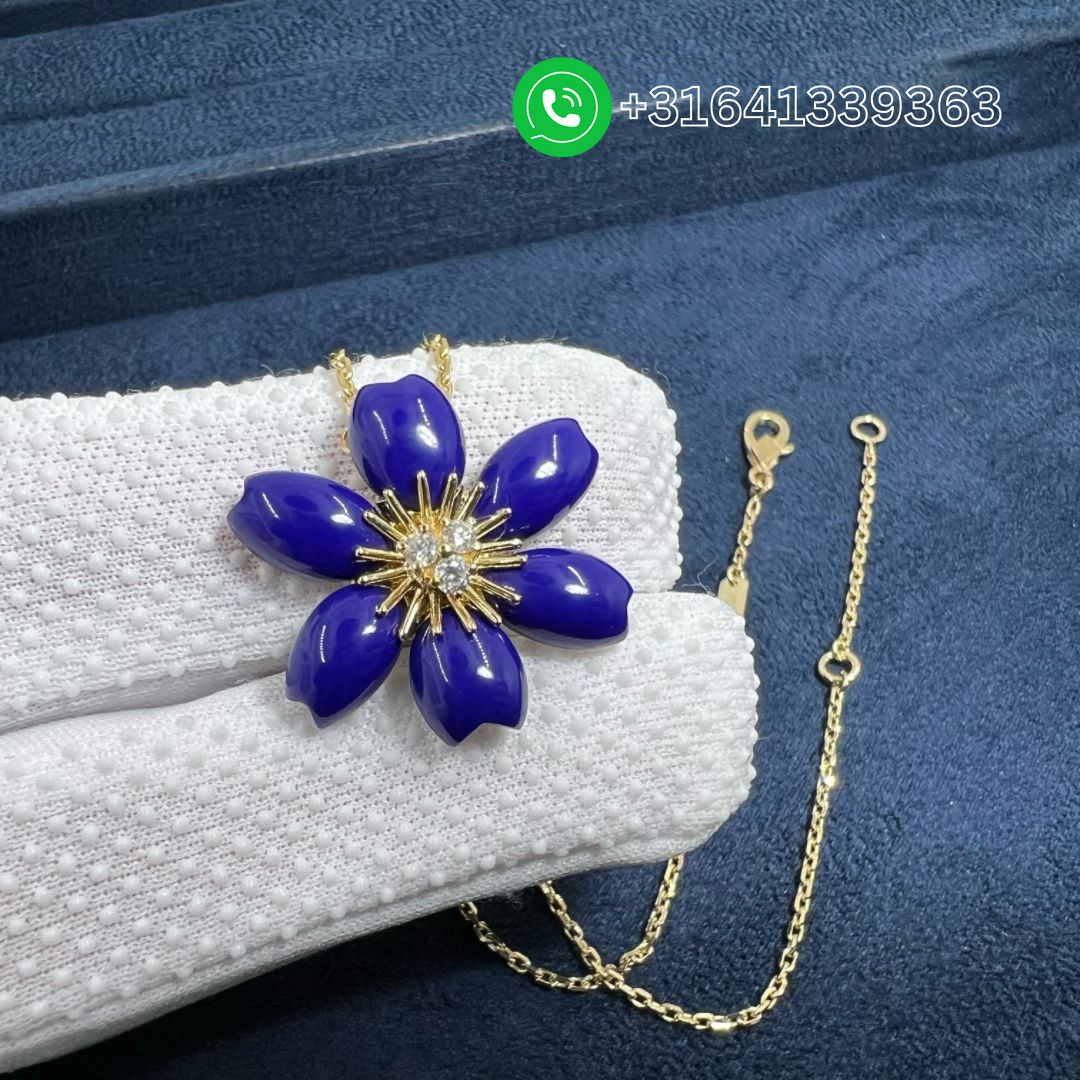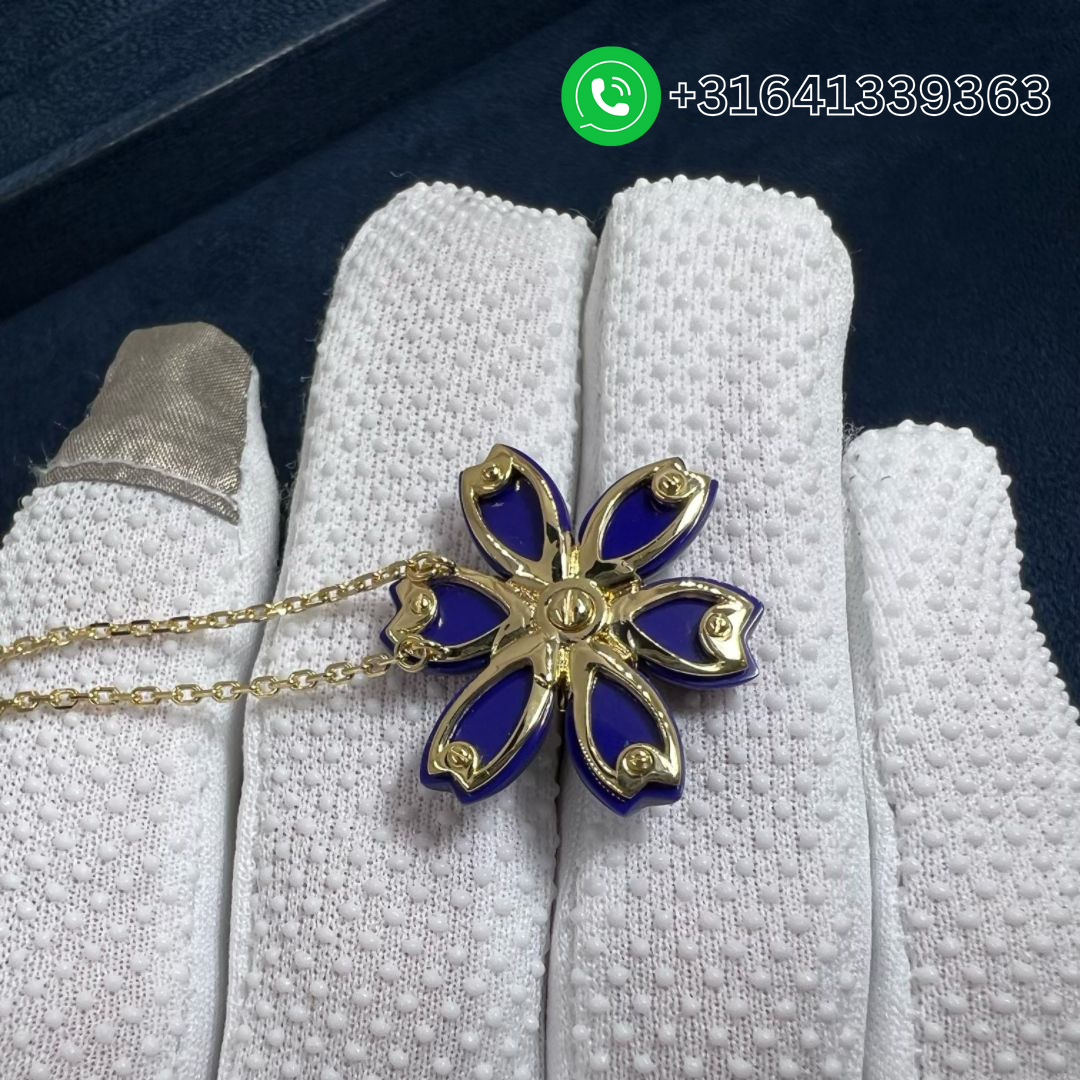 Van Cleef & Arpels 18k Yellow Gold MiNi Model Lapis Lazuli Flower Rose de Noel Pendant Necklace VCARP7T200