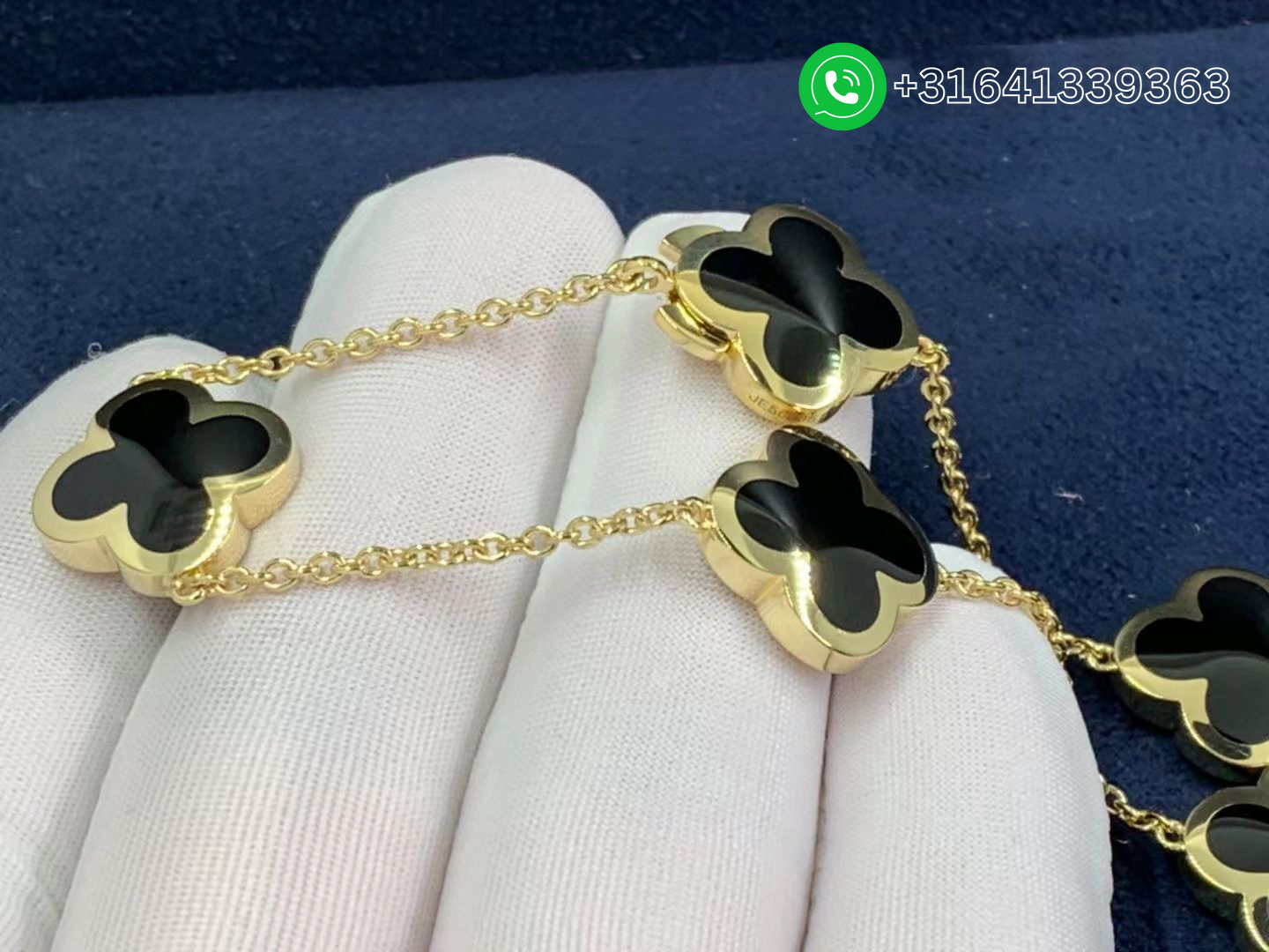 Van Cleef & Arpels 18K Yellow Gold Onyx Pure Alhambra 9 Motif Long Necklace