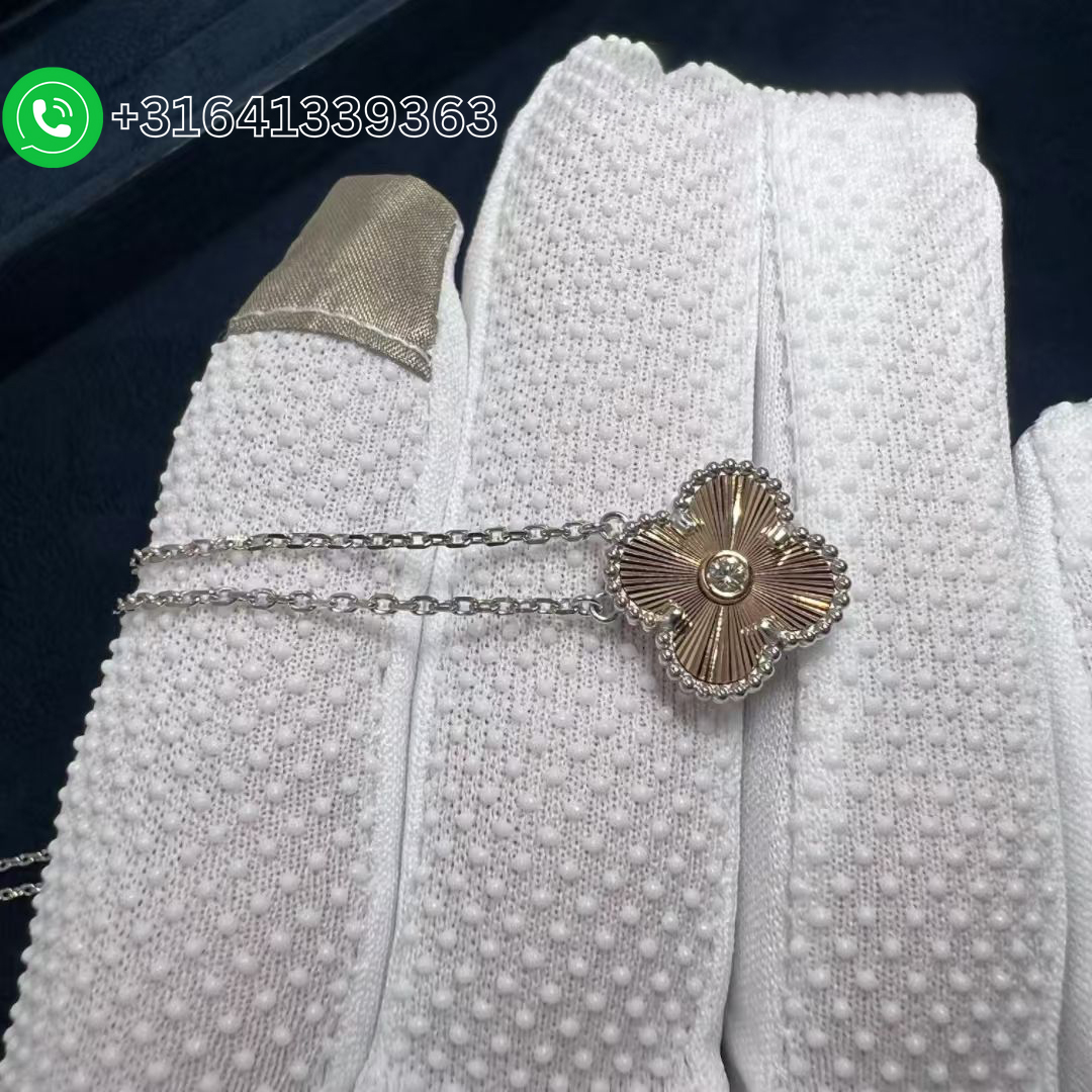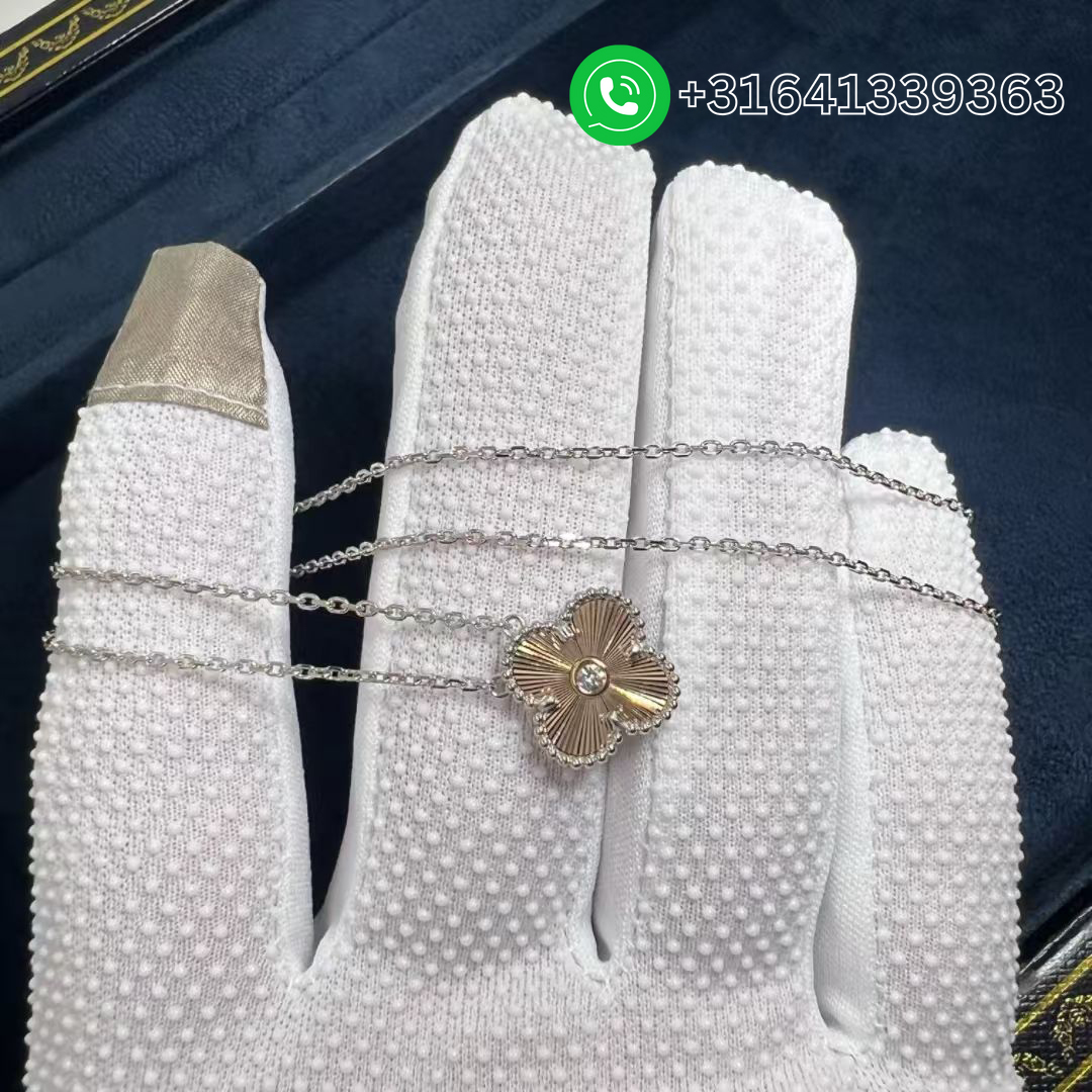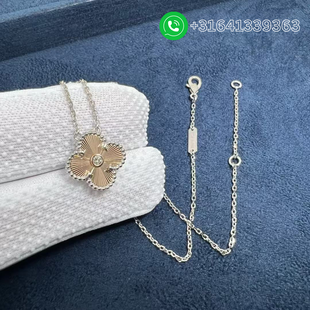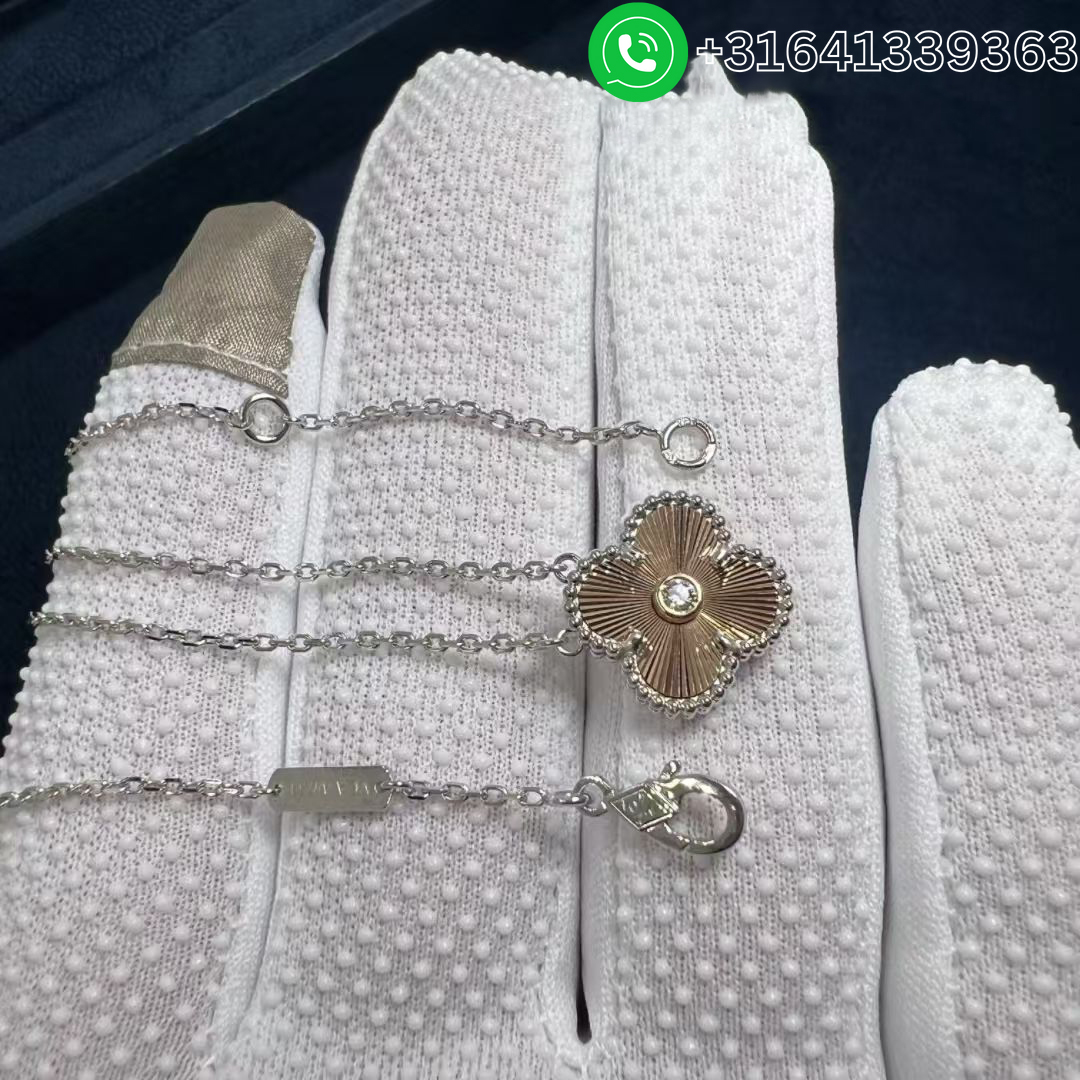 Van Cleef & Arpels 2024 Two-Tone Guilloche Vintage Alhambra Diamond Holiday Pendant Necklace