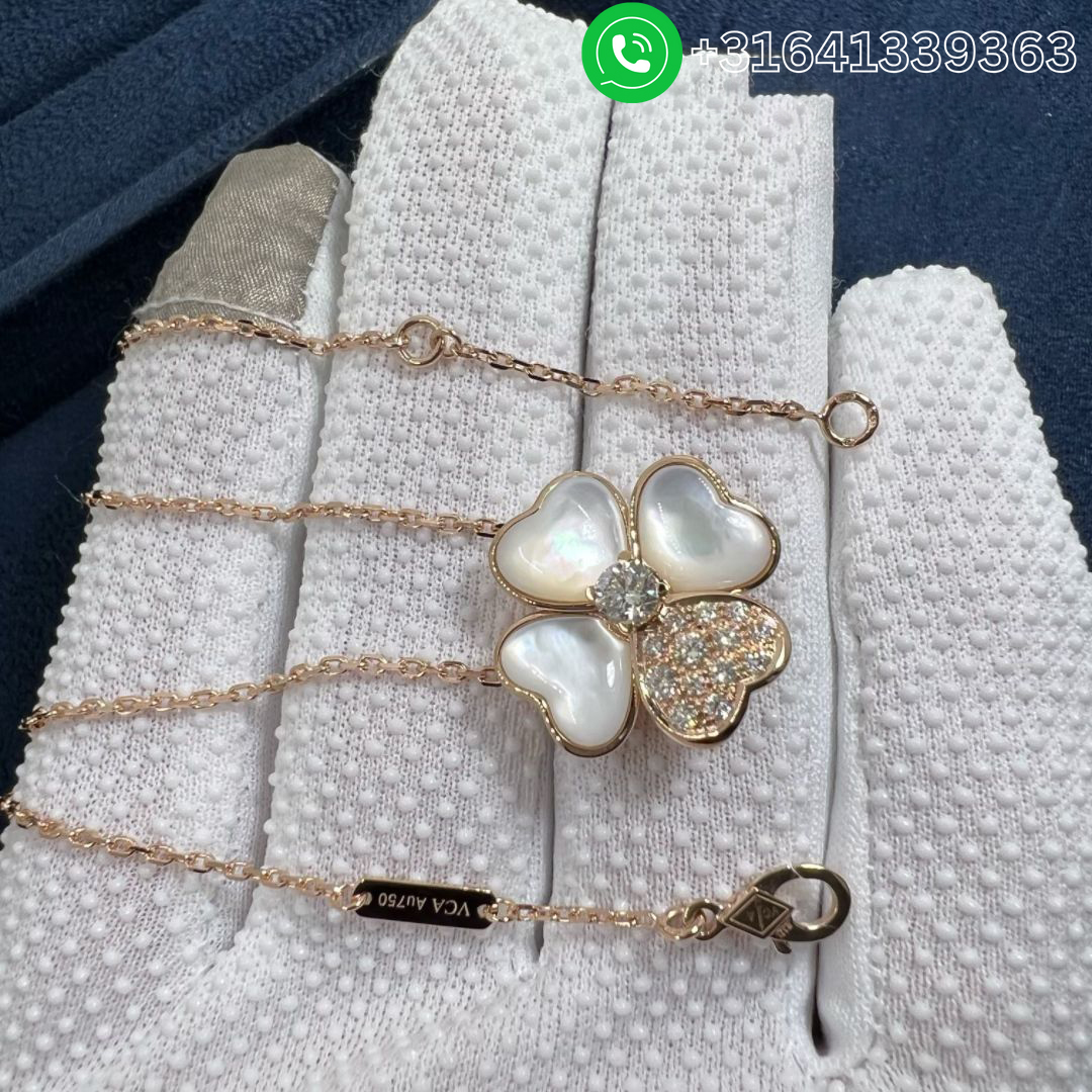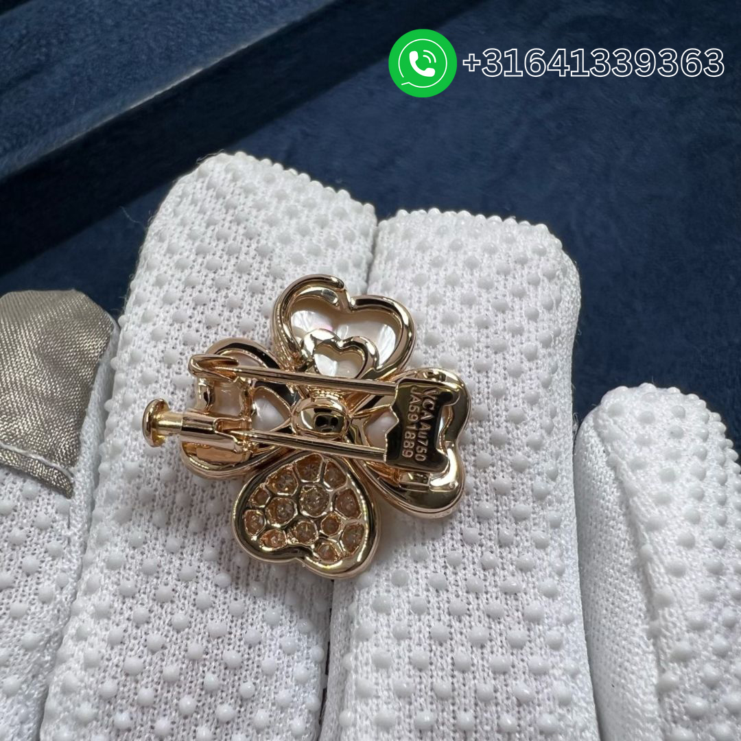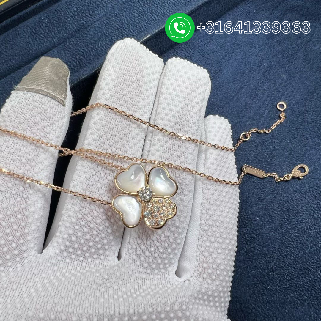 Van Cleef & Arpels Cosmos 18K Rose Gold Diamond Mother of Pearl Medium Model Clip Pendant Necklace VCARO5BV00