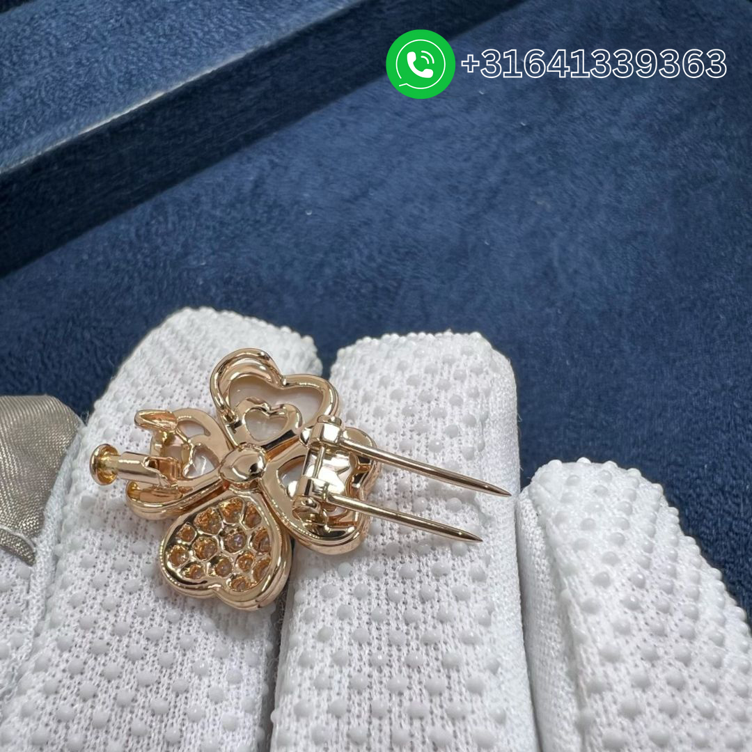 Clasp: Hallmark clasp, small model and pin back for clip in 18K rose gold